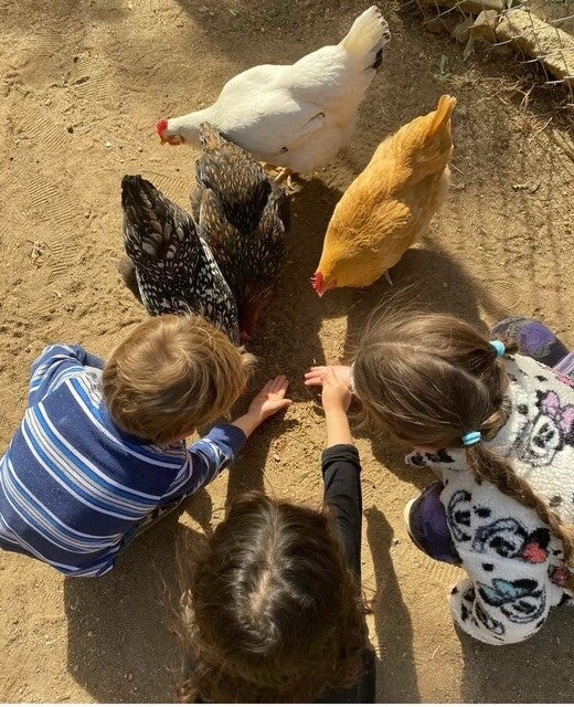 We believe in the power of outdoor learning, providing students with opportunities to connect with nature and develop a deeper understanding of the world around them. This includes stories and lessons outside in the garden, tea time picnics, tending to our chickens and resident tortoise, or grounding as a group, as we walk barefoot on the soil and tree roots to connect to our earth's vibrations.
